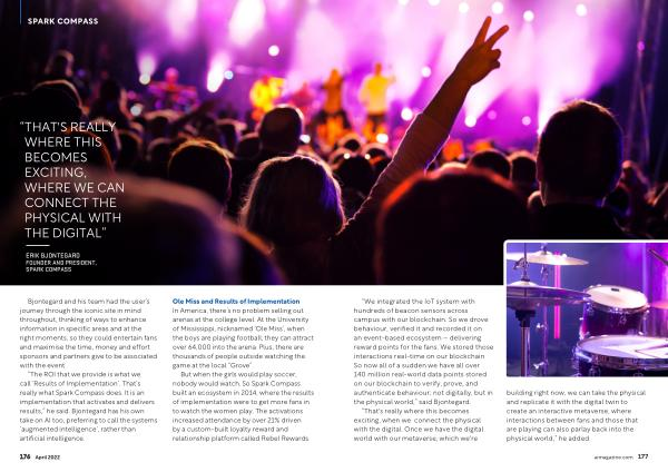 “ That ' s really where this becomes exciting , when we connect the physical with the digital . Once we have the digital world with our metaverse , which we ' re building right now , we can take the physical and replicate it with the digital twin to create an interactive metaverse , where interactions between fans and those that are playing can also parlay back into the physical world ,” he added . aimagazine . com 177