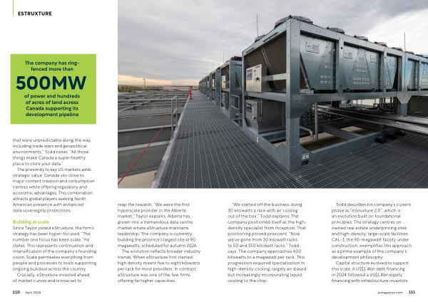 Crucially, eStruxture invested ahead of market curves and is now set to reap the rewards.“ We were the first hyperscale provider in the Alberta market,” Taylor explains. Alberta has grown into a tremendous data centre market where eStruxture maintains leadership. The company is currently building the province’ s largest site at 90 megawatts, scheduled for autumn 2026.
