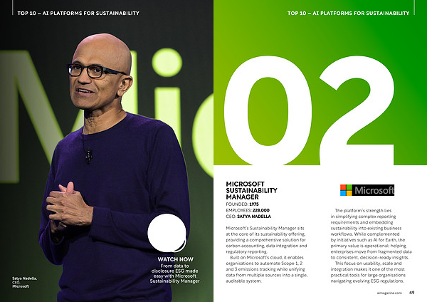 TOP 10 – AI PLATFORMS FOR SUSTAINABILITY Satya Nadella, CEO, Microsoft