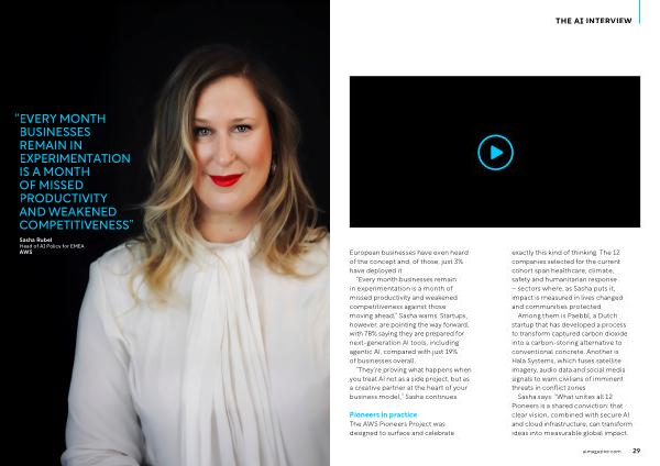 Pioneers in practice The AWS Pioneers Project was designed to surface and celebrate exactly this kind of thinking. The 12 companies selected for the current cohort span healthcare, climate, safety and humanitarian response – sectors where, as Sasha puts it, impact is measured in lives changed and communities protected.