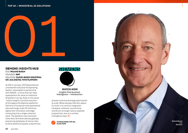 At CES in January, CEO Roland Busch unveiled the Industrial AI Operating System, developed in partnership with NVIDIA, a move that has reset expectations for what an industrial AI platform can be. Built on the cloud-native Insights Hub( the evolution of the legacy MindSphere platform), Siemens is fusing real-time operational data with large-scale AI inference, digital twin simulation and edge computing into a single coherent stack. The platform now connects more than 35 million devices globally, processing petabytes of sensor data to drive predictive quality, autonomous