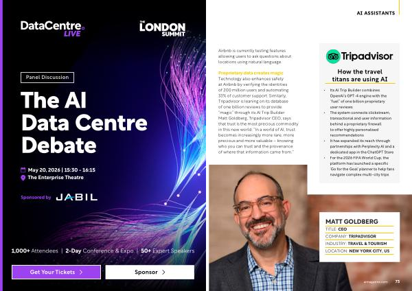 Proprietary data creates magic Technology also enhances safety at Airbnb by verifying the identities of 200 million users and automating 33 % of customer support. Similarly, Tripadvisor is leaning on its database of one billion reviews to provide“ magic” through its AI Trip Builder. Matt Goldberg, Tripadvisor CEO, says that trust is the most precious commodity in this new world:“ In a world of AI, trust becomes increasingly more rare, more precious and more valuable – knowing who you can trust and the provenance of where that information came from.”