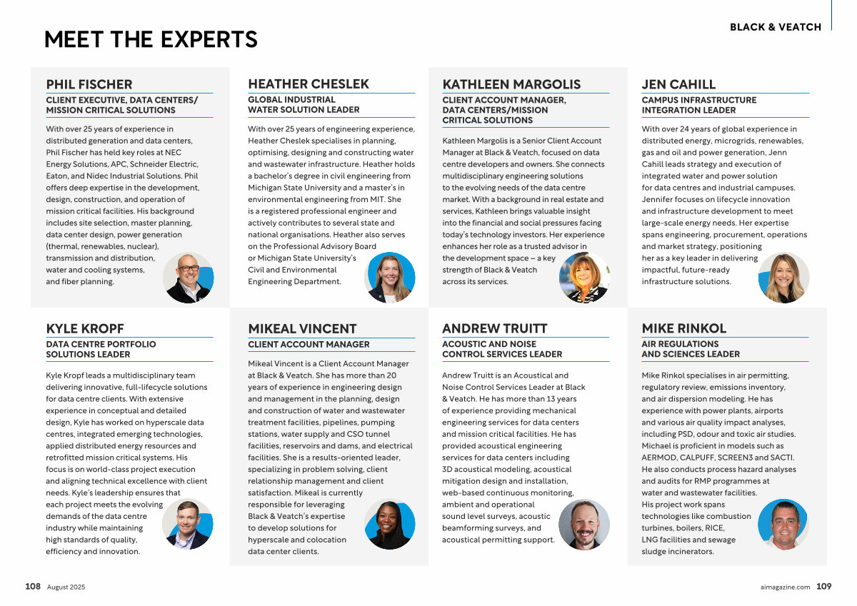 Mikeal Vincent is a Client Account Manager at Black & Veatch. She has more than 20 years of experience in engineering design and management in the planning, design and construction of water and wastewater treatment facilities, pipelines, pumping stations, water supply and CSO tunnel facilities, reservoirs and dams, and electrical facilities. She is a results-oriented leader, specializing in problem solving, client relationship management and client satisfaction. Mikeal is currently responsible for leveraging Black & Veatch’ s expertise to develop solutions for hyperscale and colocation data center clients.