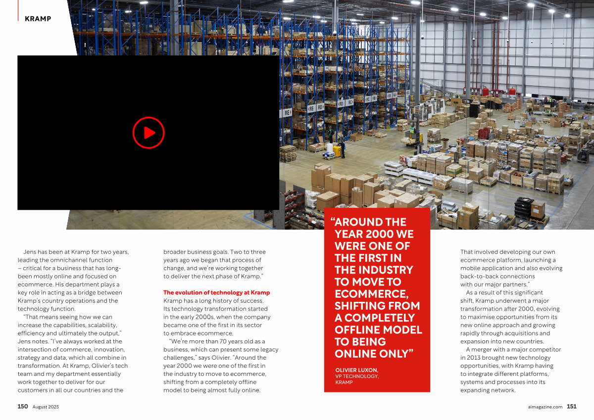 A merger with a major competitor in 2013 brought new technology opportunities, with Kramp having to integrate different platforms, systems and processes into its expanding network. aimagazine. com 151
