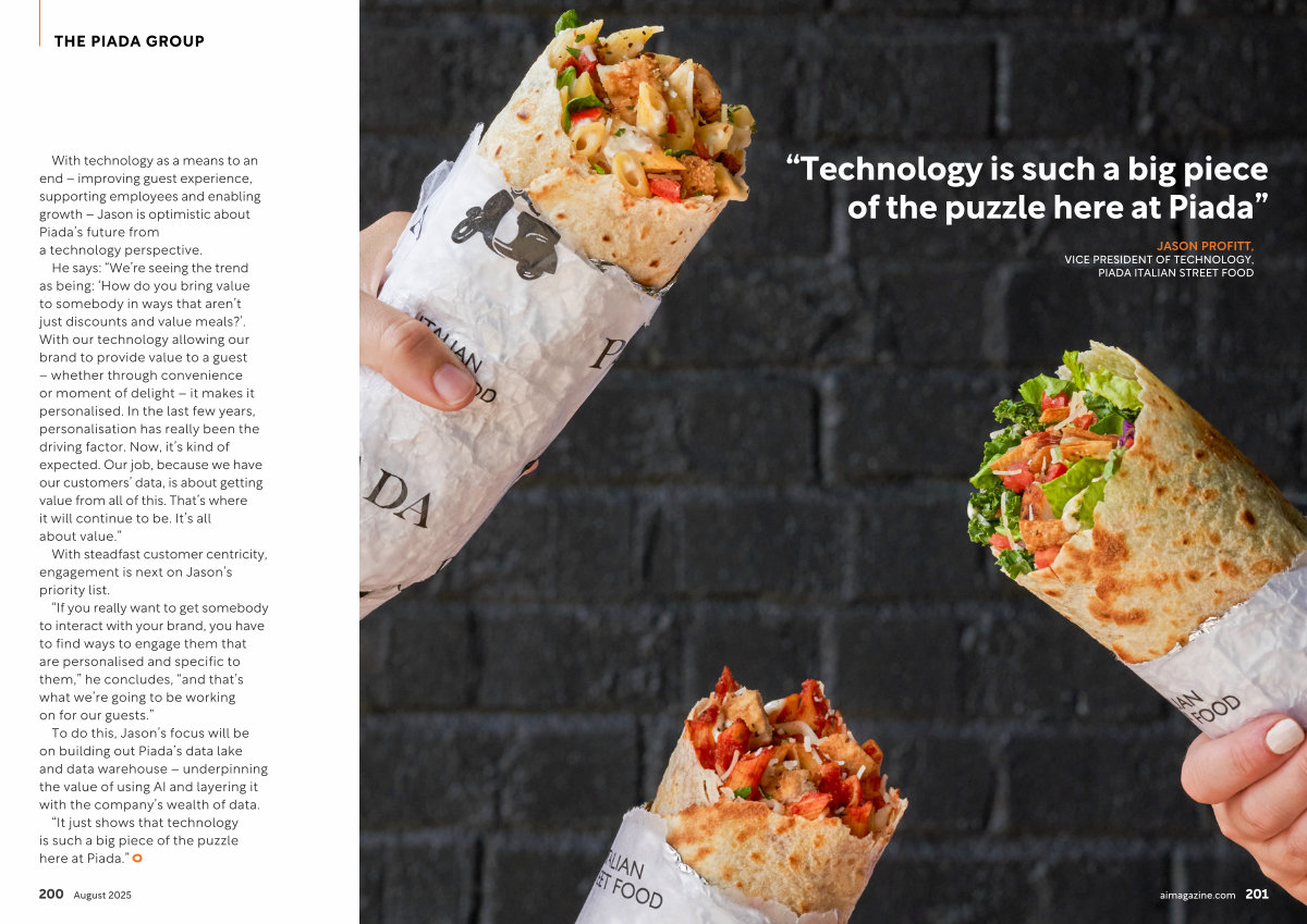To do this, Jason’ s focus will be on building out Piada’ s data lake and data warehouse – underpinning the value of using AI and layering it with the company’ s wealth of data.