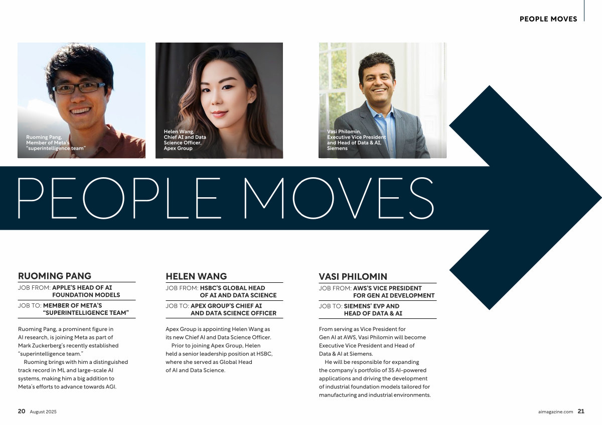 He will be responsible for expanding the company’ s portfolio of 35 AI-powered applications and driving the development of industrial foundation models tailored for manufacturing and industrial environments. aimagazine. com 21