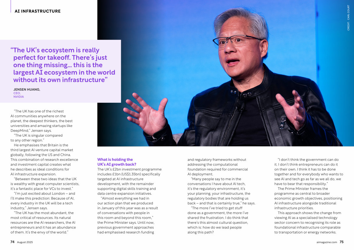 “ The UK has one of the richest AI communities anywhere on the planet, the deepest thinkers, the best universities and amazing startups like DeepMind,” Jensen says.