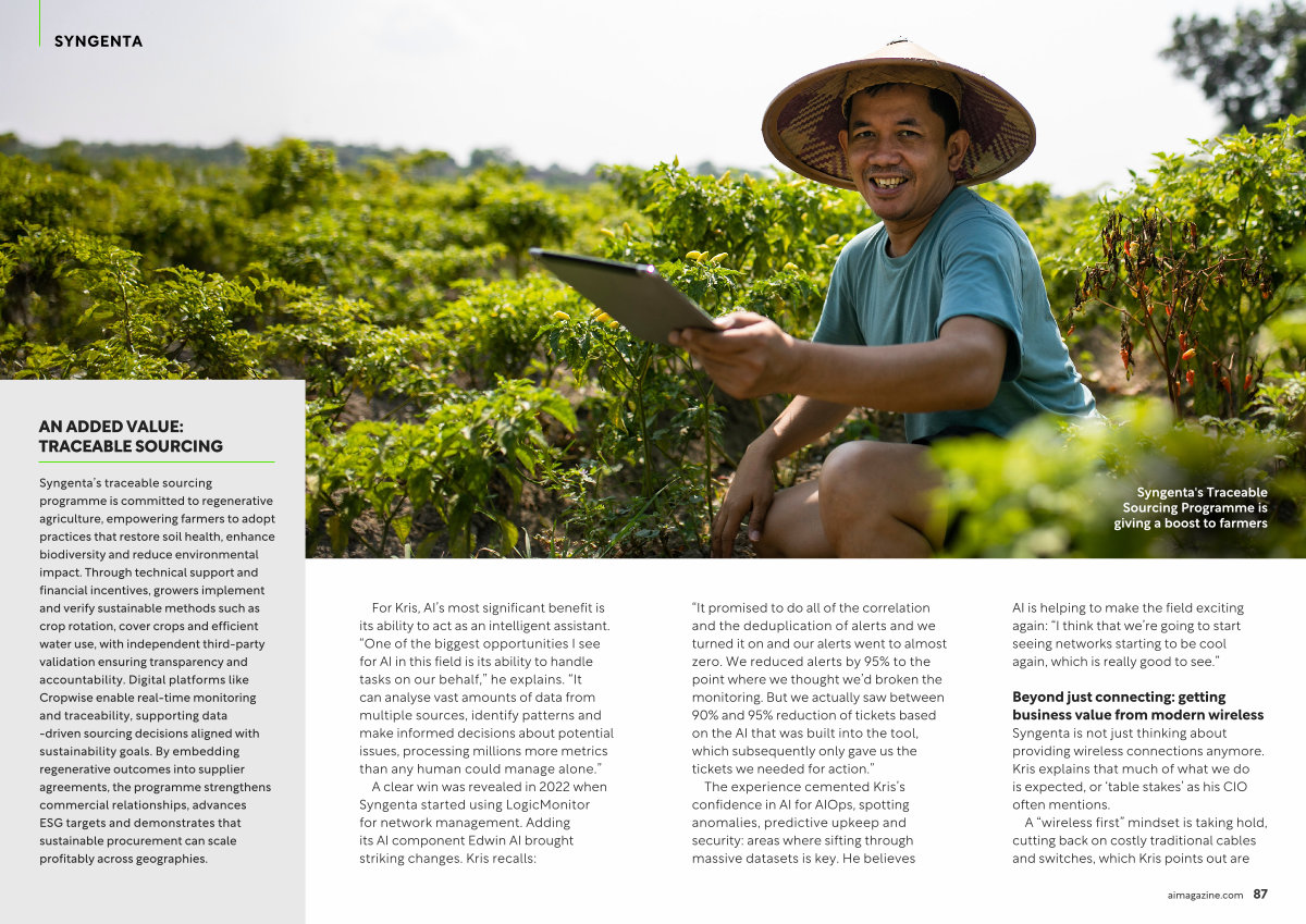 A clear win was revealed in 2022 when Syngenta started using LogicMonitor for network management. Adding its AI component Edwin AI brought striking changes. Kris recalls: