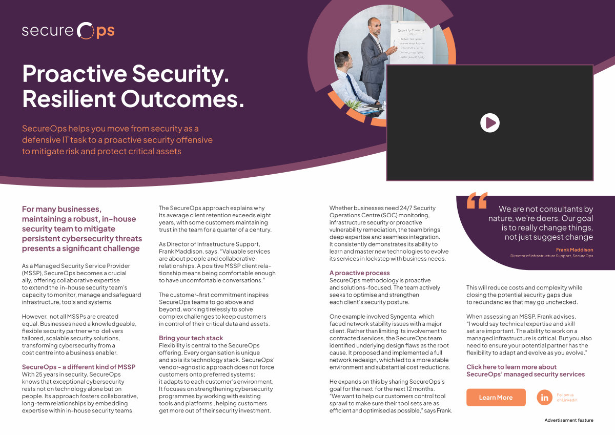 One example involved Syngenta, which faced network stability issues with a major client. Rather than limiting its involvement to contracted services, the SecureOps team identified underlying design flaws as the root cause. It proposed and implemented a full network redesign, which led to a more stable environment and substantial cost reductions.