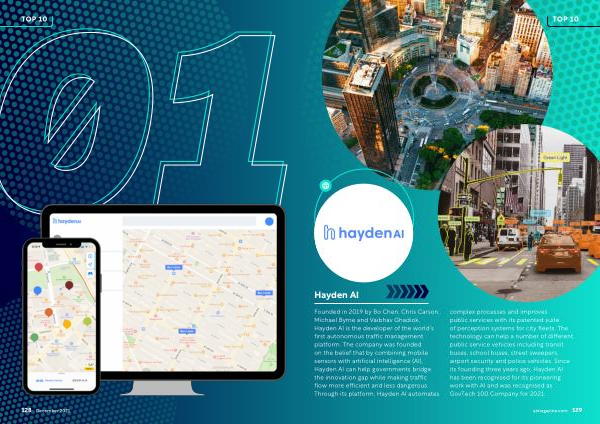 Founded in 2019 by Bo Chen , Chris Carson , Michael Byrne and Vaibhav Ghadiok , Hayden AI is the developer of the world ’ s first autonomous traffic management platform . The company was founded on the belief that by combining mobile sensors with artificial intelligence ( AI ), Hayden AI can help governments bridge the innovation gap while making traffic flow more efficient and less dangerous . Through its platform , Hayden AI automates complex processes and improves public services with its patented suite of perception systems for city fleets . The technology can help a number of different public service vehicles including transit buses , school buses , street sweepers , airport security and police vehicles . Since its founding three years ago , Hayden AI has been recognised for its pioneering work with AI and was recognised as GovTech 100 Company for 2021 .
