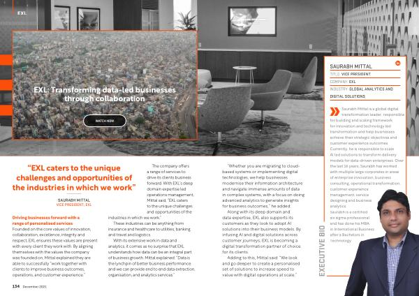 Saurabh Mittal is a global digital transformation leader , responsible for building and scaling framework for innovation and technology led transformation and help businesses achieve their strategic objectives and customer experience outcomes . Currently , he is responsible to scale AI led solutions to transform delivery models for data-driven enterprises . Over the last 16 years , Saurabh has worked with multiple large corporates in areas of enterprise innovation , business consulting , operational transformation , customer experience management , service designing and business analytics . Saurabh is a certified six sigma professional and has done his MBA in International Business after a Bachelors in Technology .