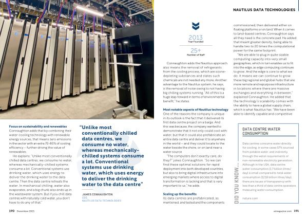 He explains : “ Unlike most conventionally chilled data centres , we consume no water , whereas mechanically-chilled systems consume a lot . Conventional systems use drinking water , which uses energy to deliver the drinking water to the data centre . Then the data centre retreats the water . In mechanical chilling , water also evaporates , and a big chunk also ends up in the wastewater system . But if you chill data centres with naturally cold water , you don ’ t have to do any of that .”