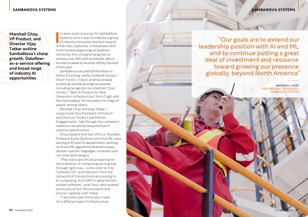 Marshall Choy , VP Product , and Director Vijay Tatkar outline SambaNova ’ s sharp growth , Dataflowas-a-service offering and broad range of industry AI opportunities