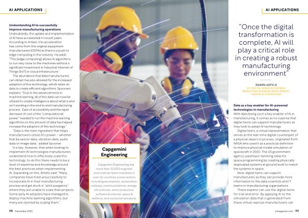 It is key , however , that when looking to implement AI technologies manufacturers understand how to effectively scale this technology , to do this there needs to be a level of expertise and knowledge around the best practices when implementing AI . Expanding on this , Antelo said : “ Many companies have tried unsuccessfully to incorporate AI in their manufacturing process and get stuck in “ pilot purgatory ” where they are unable to scale their projects . Some early AI adopters have managed to deploy machine learning algorithms , but many are stymied by scaling them .”