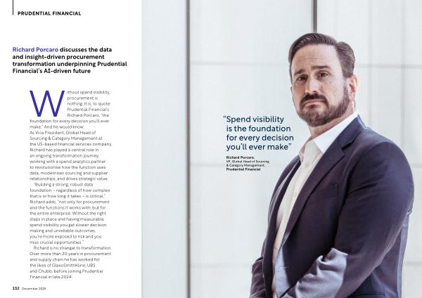 Without spend visibility, procurement is nothing. It is, to quote Prudential Financial’ s Richard Porcaro,“ the foundation for every decision you’ ll ever make.” And he would know. As Vice President, Global Head of Sourcing & Category Management at the US-based financial services company, Richard has played a central role in an ongoing transformation journey, working with a spend analytics partner to revolutionise how the function uses data, modernises sourcing and supplier relationships, and drives strategic value.