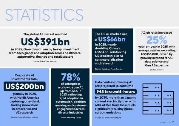 in 2025, nearly doubling China’ s US $ 34bn, reinforcing US leadership in AI commercialisation and research