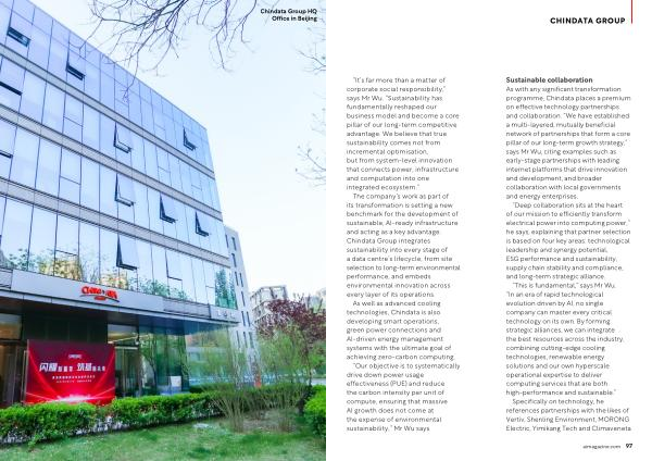 The company’ s work as part of its transformation is setting a new benchmark for the development of sustainable, AI-ready infrastructure and acting as a key advantage. Chindata Group integrates sustainability into every stage of a data centre’ s lifecycle, from site selection to long-term environmental performance, and embeds environmental innovation across every layer of its operations.