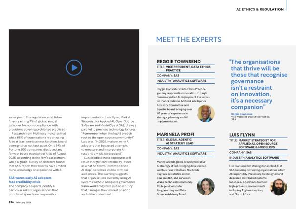 SAS warns early AI adopters face credibility crisis The company’ s experts identify a particular risk for organisations that prioritised speed over responsible implementation. Luis Flynn, Market Strategist for Applied AI, Open Source Software and ModelOps at SAS, draws a parallel to previous technology failures.“ Remember when the log4J breach rocked the open source community?” Luis says.“ In 2026, mature, early AI adopters that bypassed attempts to measure and incorporate AI responsibly will be exposed.”
