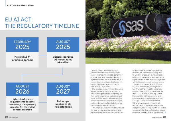 Stu Bradley, Senior Vice President of Fraud and Security Intelligence at SAS, frames the overall transition as a market correction.“ 2026 will mark the start of AI’ s market reckoning – when hype collides with governance and only accountable innovation endures,” Stu says.“ The push for consistent ROI and transparent oversight will shutter vanity projects and reward the disciplined, refocusing investment on the fundamentals: data orchestration, sound modeling and explainable governance.”