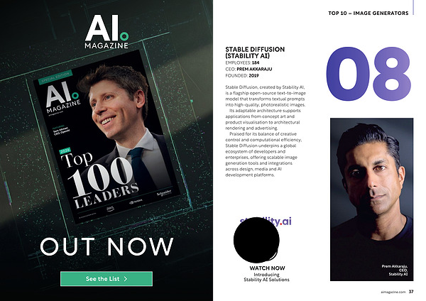 Praised for its balance of creative control and computational efficiency, Stable Diffusion underpins a global ecosystem of developers and enterprises, offering scalable image generation tools and integrations across design, media and AI development platforms.