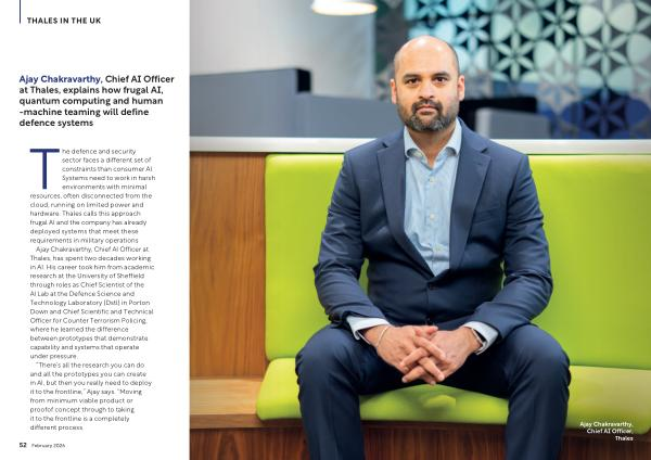 Ajay Chakravarthy, Chief AI Officer at Thales, has spent two decades working in AI. His career took him from academic research at the University of Sheffield through roles as Chief Scientist of the AI Lab at the Defence Science and Technology Laboratory( Dstl) in Porton Down and Chief Scientific and Technical Officer for Counter Terrorism Policing, where he learned the difference between prototypes that demonstrate capability and systems that operate under pressure.