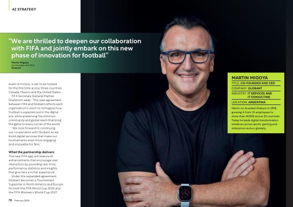 FIFA Secretary General Mattias Grafström adds:“ This new agreement between FIFA and Globant reflects each organisation’ s vision to reimagine how football is experienced in the digital era, while preserving the emotion, community and global reach that bring the game to every corner of the world.“ We look forward to continuing our cooperation with Globant as we build digital services that make our tournaments even more engaging and enjoyable for fans.”