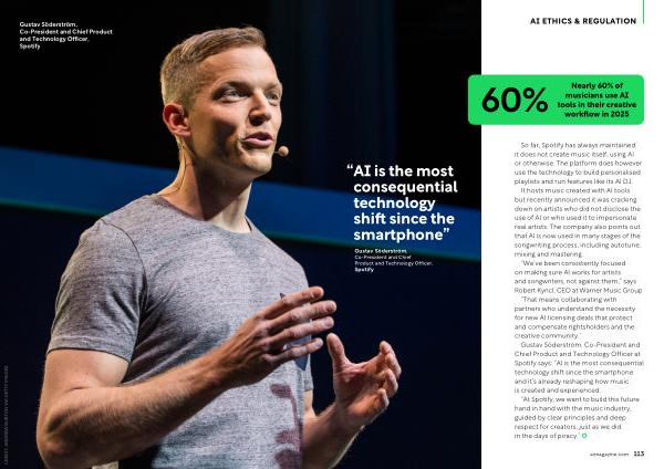 “ At Spotify, we want to build this future hand in hand with the music industry, guided by clear principles and deep respect for creators, just as we did in the days of piracy.” aimagazine. com 113