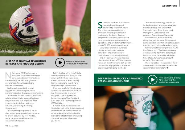 Nike’ s using RFID technology to recognise customers and deliver personalised recommendations based on app data including colour preferences, favourite sports and foot measurements.