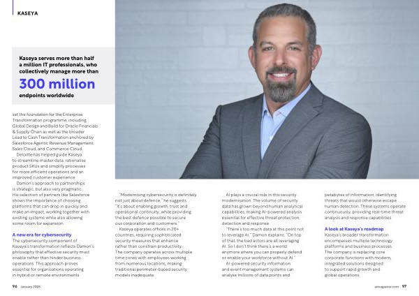 A new era for cybersecurity The cybersecurity component of Kaseya’ s transformation reflects Damon’ s philosophy that effective security must enable rather than hinder business operations. This approach proves essential for organisations operating in hybrid or remote environments.