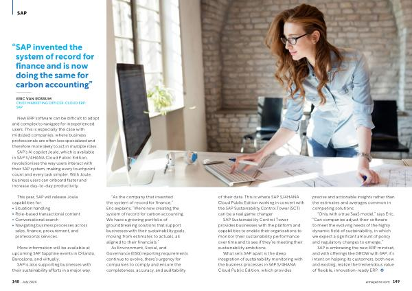 “ As the company that invented the system of record for finance ,” Eric explains , “ We ’ re now creating the system of record for carbon accounting . We have a growing portfolio of groundbreaking solutions that support businesses with their sustainability goals , moving from estimates to actuals , all aligned to their financials .”