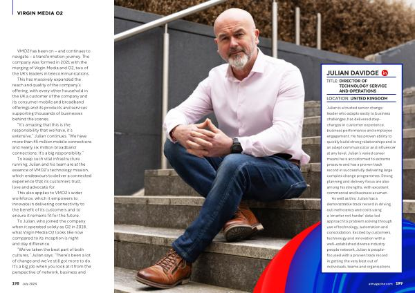 “ It ’ s amazing that this is the responsibility that we have , it ’ s extensive ,” Julian continues . “ We have more than 45 million mobile connections and nearly six million broadband connections . It ’ s a big responsibility .” To keep such vital infrastructure running , Julian and his team are at the essence of VMO2 ’ s technology mission , which endeavours to deliver a connected experience that its customers trust , love and advocate for .