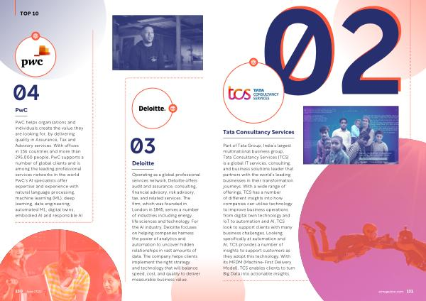 Operating as a global professional services network , Deloitte offers audit and assurance , consulting , financial advisory , risk advisory , tax , and related services . The firm , which was founded in London in 1845 , serves a number of industries including energy , life sciences and technology . For the AI industry , Deloitte focuses on helping companies harness the power of analytics and automation to uncover hidden relationships in vast amounts of data . The company helps clients implement the right strategy and technology that will balance speed , cost , and quality to deliver measurable business value .