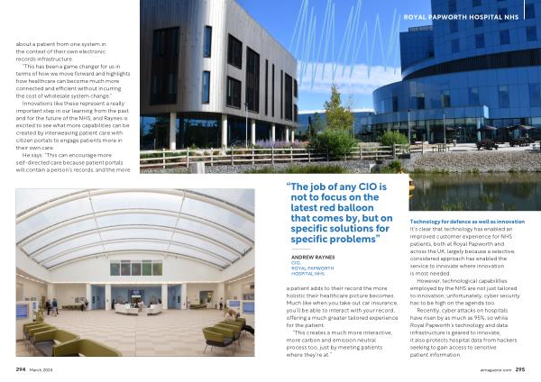 Innovations like these represent a really important step in our learning from the past and for the future of the NHS , and Raynes is excited to see what more capabilities can be created by interweaving patient care with citizen portals to engage patients more in their own care .