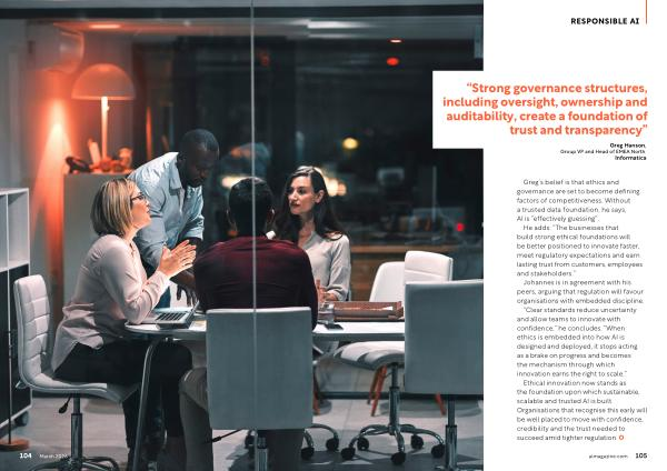 Greg’ s belief is that ethics and governance are set to become defining factors of competitiveness. Without a trusted data foundation, he says, AI is“ effectively guessing”.
