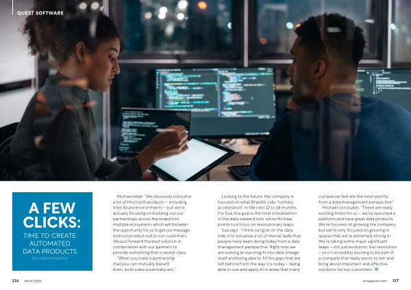 Sue says:“ I think our goal on the data side is to virtualise a lot of menial tasks that people have been doing today from a data management perspective. Right now we are looking at injecting AI into data lineage itself and being able to fill the gaps that are left behind from the way it is today – being able to use and apply AI in areas that many companies feel are the most painful from a data management perspective.”