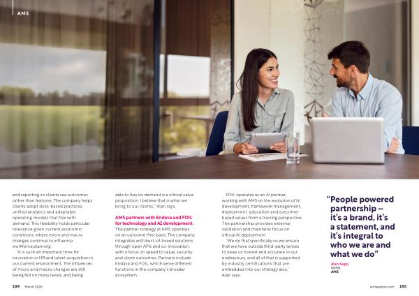 AMS partners with Endava and FOIL for technology and AI development The partner strategy at AMS operates on an outcome-first basis. The company integrates with best-of-breed solutions through open APIs and co-innovation, with a focus on speed to value, security and client outcomes. Partners include Endava and FOIL, which serve different functions in the company’ s broader ecosystem.
