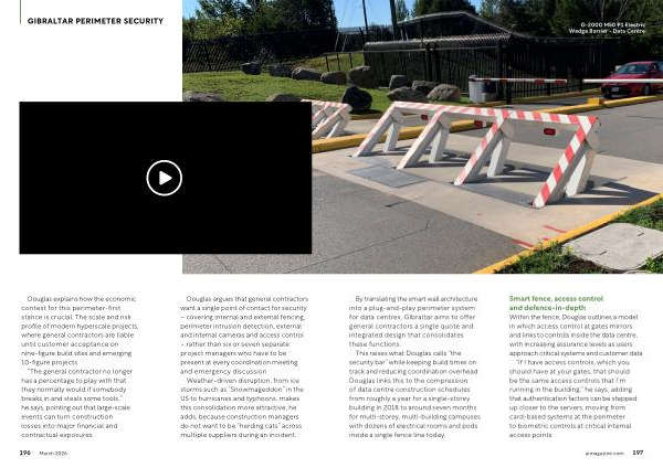 By translating the smart wall architecture into a plug‐and‐play perimeter system for data centres, Gibraltar aims to offer general contractors a single quote and integrated design that consolidates these functions.