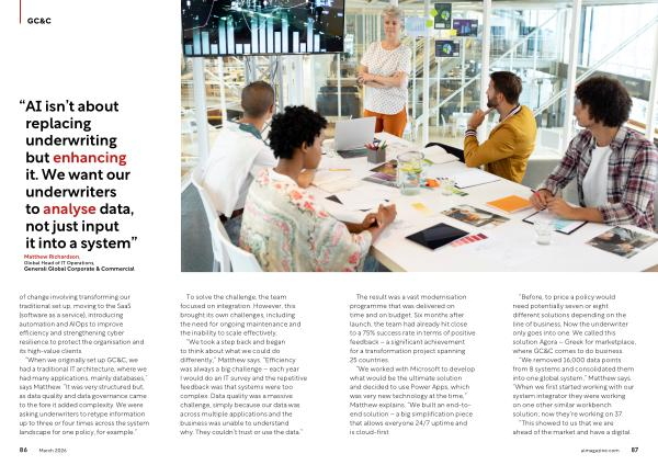 “ When we originally set up GC & C, we had a traditional IT architecture, where we had many applications, mainly databases,” says Matthew.“ It was very structured but, as data quality and data governance came to the fore it added complexity. We were asking underwriters to retype information up to three or four times across the system landscape for one policy, for example.”