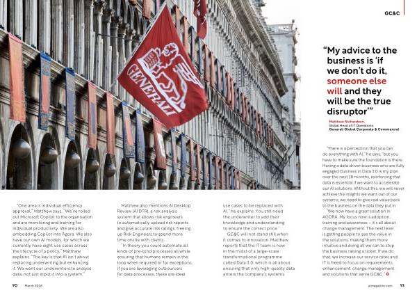 Matthew Richardson, Global Head of IT Operations, Generali Global Corporate & Commercial use cases to be replaced with AI,” he explains. You still need the underwriter to add their knowledge and understanding to ensure the correct price.”