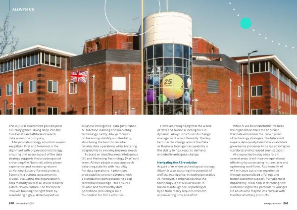 Navigating the AI revolution As part of its wider technological strategy , Allwyn is also exploring the potential of artificial intelligence , including generative AI . However , it emphasises that the technology is not a silver bullet . In Business Intelligence , separating AI hype from reality requires research and investing time and effort .