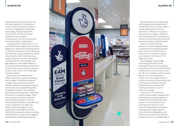 By leveraging cutting-edge technology and data-driven strategies , Allwyn aims to amplify the positive impact that The National Lottery has on communities across the UK . As it embarks on this journey , Allwyn is not just operating a lottery ; it ’ s continuing to invest in a national institution that has become a cornerstone of British society , supporting Good Causes and creating moments of joy for millions of people .