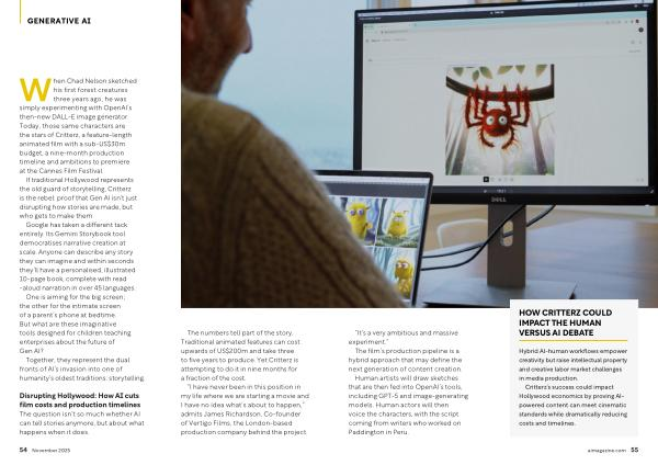 Critterz’ s success could impact Hollywood economics by proving AIpowered content can meet cinematic standards while dramatically reducing costs and timelines. aimagazine. com 55