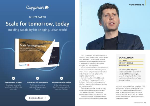 content, when asked how people in 2030 will discern“ what’ s real and what’ s not real” in a media landscape filled with viral, AI-generated videos, Sam says that society has historically“ accepted some gradual move” away from purely unaltered media. aimagazine. com 59