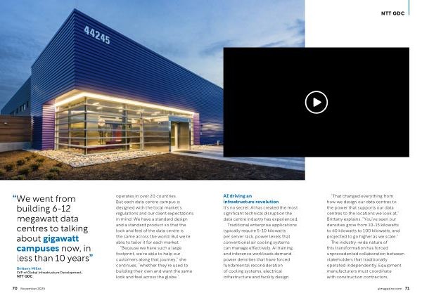 “ That changed everything from how we design our data centres to the power that supports our data centres to the locations we look at,” Brittany explains.“ You’ ve seen our densities grow from 10-15 kilowatts to 60 kilowatts to 100 kilowatts, and projected to go higher as we scale.”