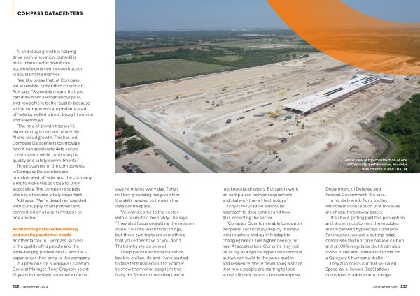 Accelerating data centre delivery and meeting customer needs Another factor to Compass ’ success is the quality of its people and the wide-ranging professional – and life – experiences they bring to the company .