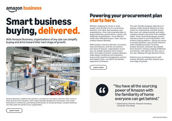 Enhance your purchasing process with Amazon Business and drive towards your next stage of growth.“ You have all the sourcing power of Amazon with the familiarity of home everyone can get behind.”