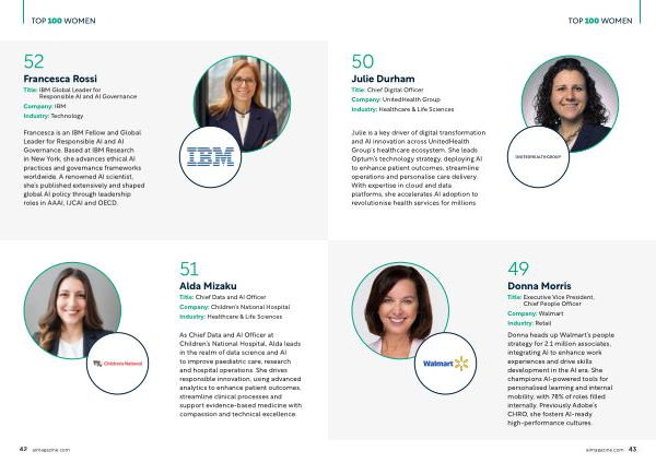 Donna heads up Walmart’ s people strategy for 2.1 million associates, integrating AI to enhance work experiences and drive skills development in the AI era. She champions AI-powered tools for personalised learning and internal mobility, with 78 % of roles filled internally. Previously Adobe’ s CHRO, she fosters AI-ready high-performance cultures.